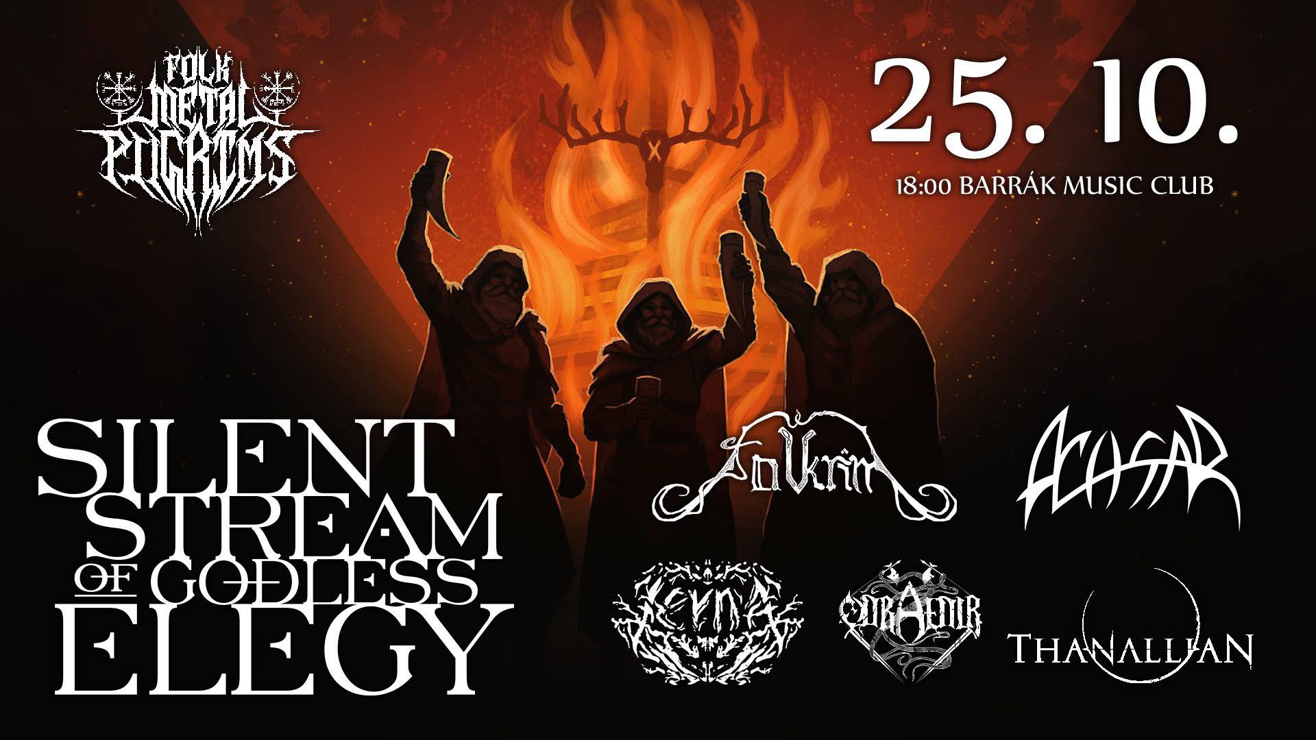Having thoroughly conquered their homeland, SILENT STREAM OF GODLESS ELEGY are now ready to take on the world. The Moravians are able to stake their claim as pioneers of this genre, as opposed to all the cheap followers of the trend. SILENT STREAM OF GODLESS ELEGY move far beyond simple drinking songs and could be compared with a fresh whirlwind blowing through the Folk Metal genre, like the unfortunately short lived but legendary GÅTE from Norway. At the same time, they share the catchiness of the German so called Medieval Metal and Rock scene or their Finnish Folklore counterparts, while maintaining complete originality and difference in sound deriving from their native traditions.